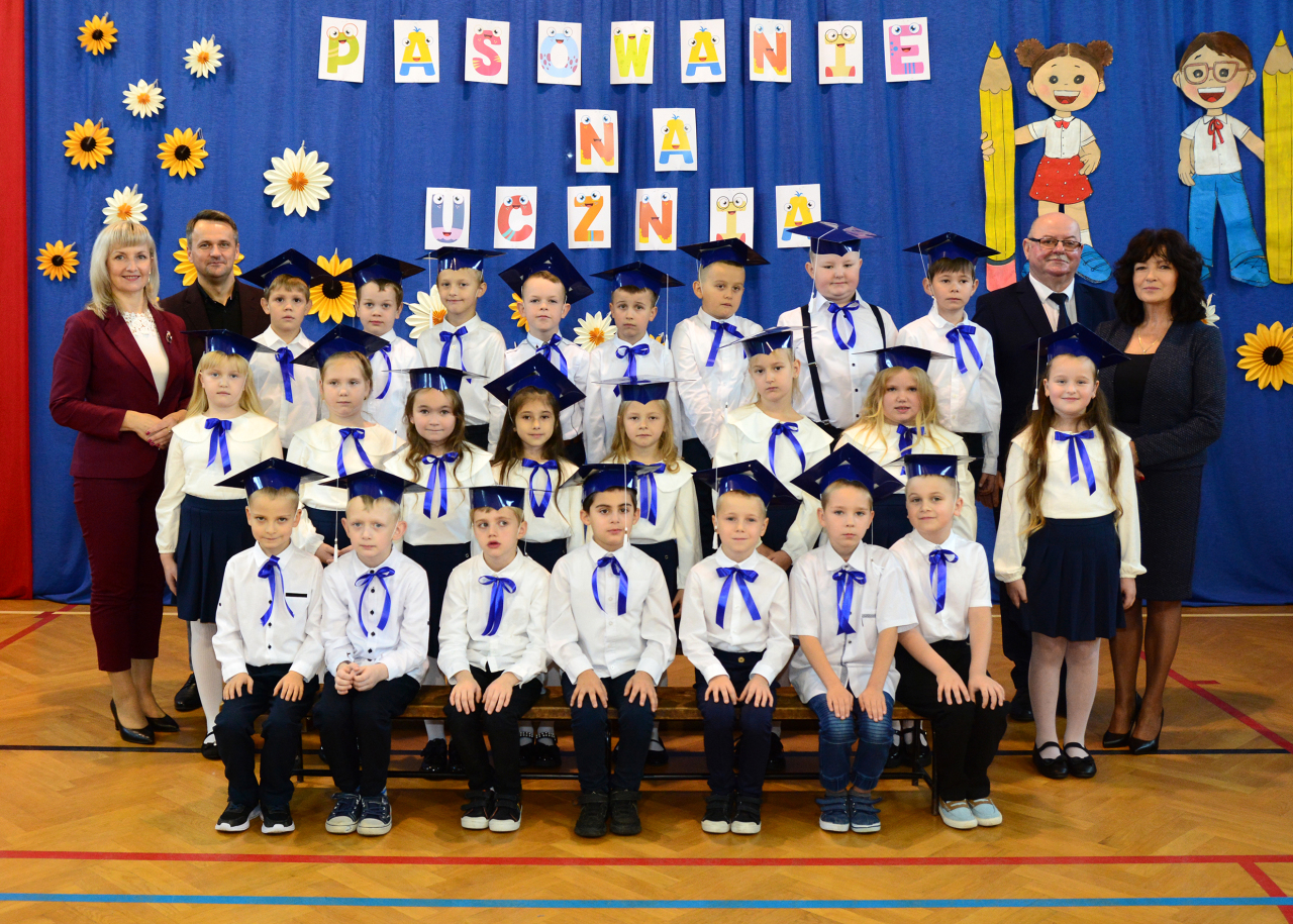 23 października 2025 r. w naszej szkole odbyła się uroczystość ślubowania i pasowania uczniów klasy pierwszej. Pierwszoklasiści w obecności Dyrekcji Szkoły, władz samorządowych, nauczycieli, rodziców i starszych kolegów przedstawili program artystyczny, w którym śpiewająco zaprezentowali wiadomości dotyczące naszej ojczyzny, szkolnej nauki oraz zasad zachowania. Po części artystycznej przyszedł czas na ślubowanie, które pierwszaki z wielkim przejęciem złożyły na sztandar szkoły. Następnie pan dyrektor A. Stańczyk dokonał aktu pasowania na uczniów szkoły. Nie zabrakło również drobnych upominków od kolegów z klasy drugiej oraz słodkości od rodziców i p. Wójt Doroty Dobrzyńskiej. Dopełnieniem uroczystości było wspólne zdjęcie. Po zakończeniu części oficjalnej wszyscy uczestnicy zostali zaproszeni do sali na słodki poczęstunek przygotowany przez rodziców. Wszystkim pierwszoklasistom życzymy sukcesów w nauce i jak najlepszych ocen na pierwszym szkolnym świadectwie. Rodzicom dziękujemy za bardzo duże zaangażowanie w przygotowanie tak pięknej uroczystości, zaś Samorządowi Uczniowskiemu za pomoc w organizacji imprezy.